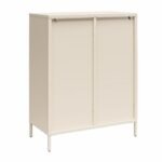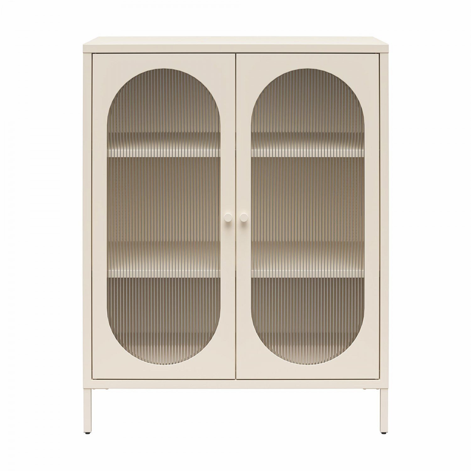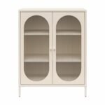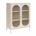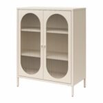 Luna Short 2-Door Metal Accent Cabinet with Fluted Glass – Parchment