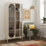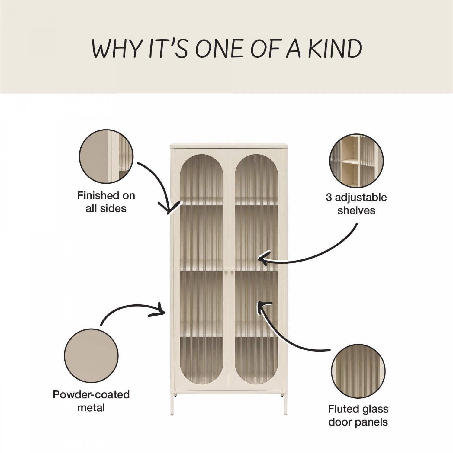 Luna Tall 2-Door Accent Cabinet with Fluted Glass – Parchment